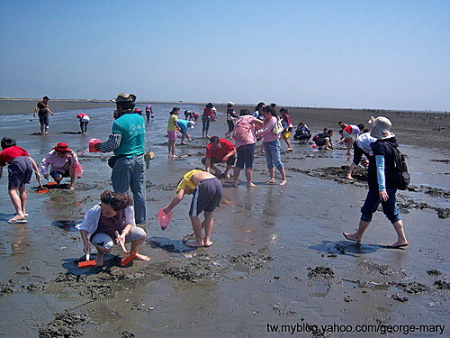 還有幾個好像有來過,傳雞絲來大耙特耙的,好像也有看到人帶大隻的綁在腰上,那隻耙一次我可能要耙幾十次,嘿!真是來抓蛤蜊要煮大鍋湯的
