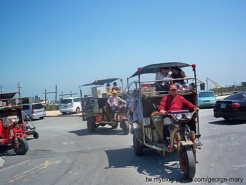 吃完中餐,我們往停車的地方前進,準備換裝戴帽子擦防曬油,這時路邊進來的遊客變多了,可能也是來坐下午一點的採蚵車之旅的