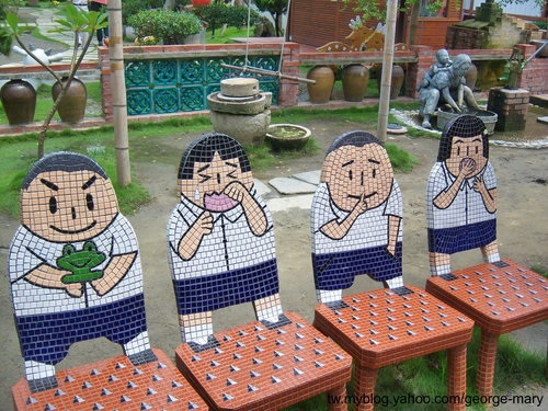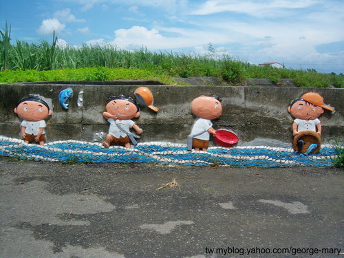 鄉間小路到處都是藝術創作,小朋友感覺很新奇