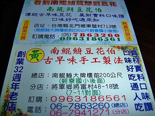 那這一間豆花伯是我跑北門這一帶,看到路邊有指示路標才知道的,不過說也奇怪每次要去總店吃,都遇到沒開就是了