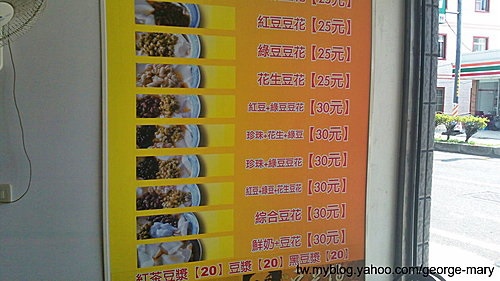 牆上的價目表,看的我不知道要吃什麼,就紅豆豆花了