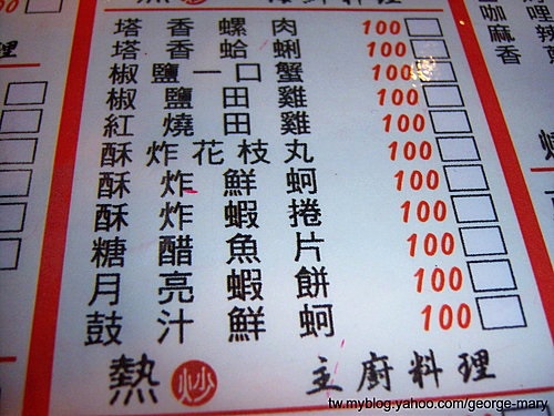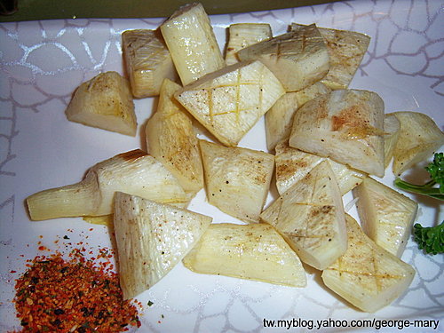 烤絞白筍,沒有水份,不覺得好吃,在這裡兩盤用烤的100摳我覺得沒有份量
