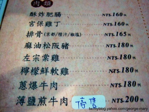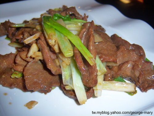蔥爆牛肉,東東這裡的訂價依菜單上面小份為準,它會依照你們的人數下去建議你們吃小的、中的或大的,價位計算中的乘以小的價位1.5倍,那今天我們吃中的,那這道菜大家是嫌小了一點,菜單會放最後面僅供參考