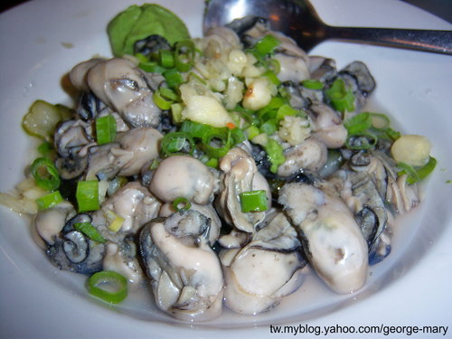 醋溜東石蚵,我先來在拍菜單有先看到這一道,在報阿仁ㄚ~看,他眼睛都亮了,知道中秋節我們烤肉都用東石蚵的美味,第一道指名要吃這個,果然新鮮美味又順口,沾上哇沙米那種豐富又多層次感,真的很難忘