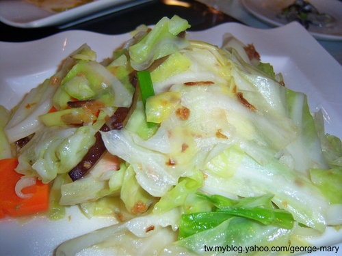 炒高麗菜,現在星期天有吃合菜的話,蔬菜這一部份都有請小芬點,口味上滿清脆鮮甜的,還有阿仁ㄚ~邀酒喝,結果沒下文,我幫他要來喝,不然三個禮拜沒酒喝,下次又有理由了
