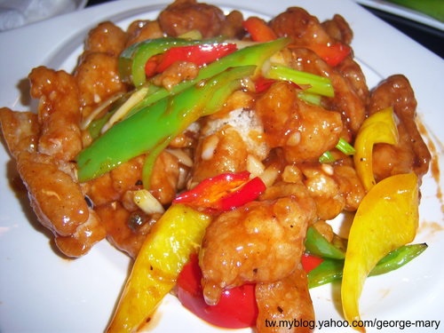 左宗棠雞,阿仁ㄚ~點的,看來點菜功力最好的是他,他比較偏點一些不常吃到的,而且是餐廳的主菜,那為什麼稱呼為左宗棠雞,雞蛋ㄟ~查說左宗棠雞是傳統湖南菜的說法是個謊言,真正的發明人是三十八年來台的老兵,到了台灣後發明了左宗棠雞,取名原因無他,只是因為左宗棠是湖南名人,之後這位廚師移居紐約,才把這道菜帶到了國際市場,口味重而甜的左宗棠雞很受美國人歡迎,於是廣為流傳,各種創意版本也紛紛出現